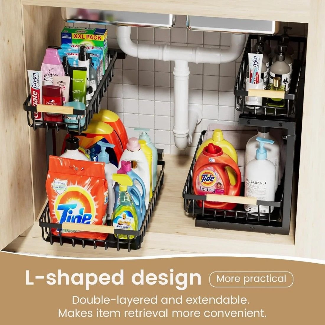 3.Space Saving Storage:Our 2-tier kitchen organizers and storage provides storage solution to maximize space utilization and fit any cabinet or sink, gain more space in the cabinet, pantry room, or even open space.