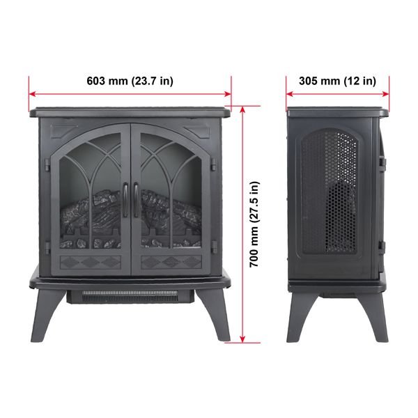 The stove which adopts a retro design concept and it has a patent on its appearance , The stove is all made of black cast iron and are very beautiful and strong. which means the product is very portable and an adult can easily lift the stove.The key functions on the fireplace and remote control are clearly marked, and it is also very easy to operate for the elderly or children.