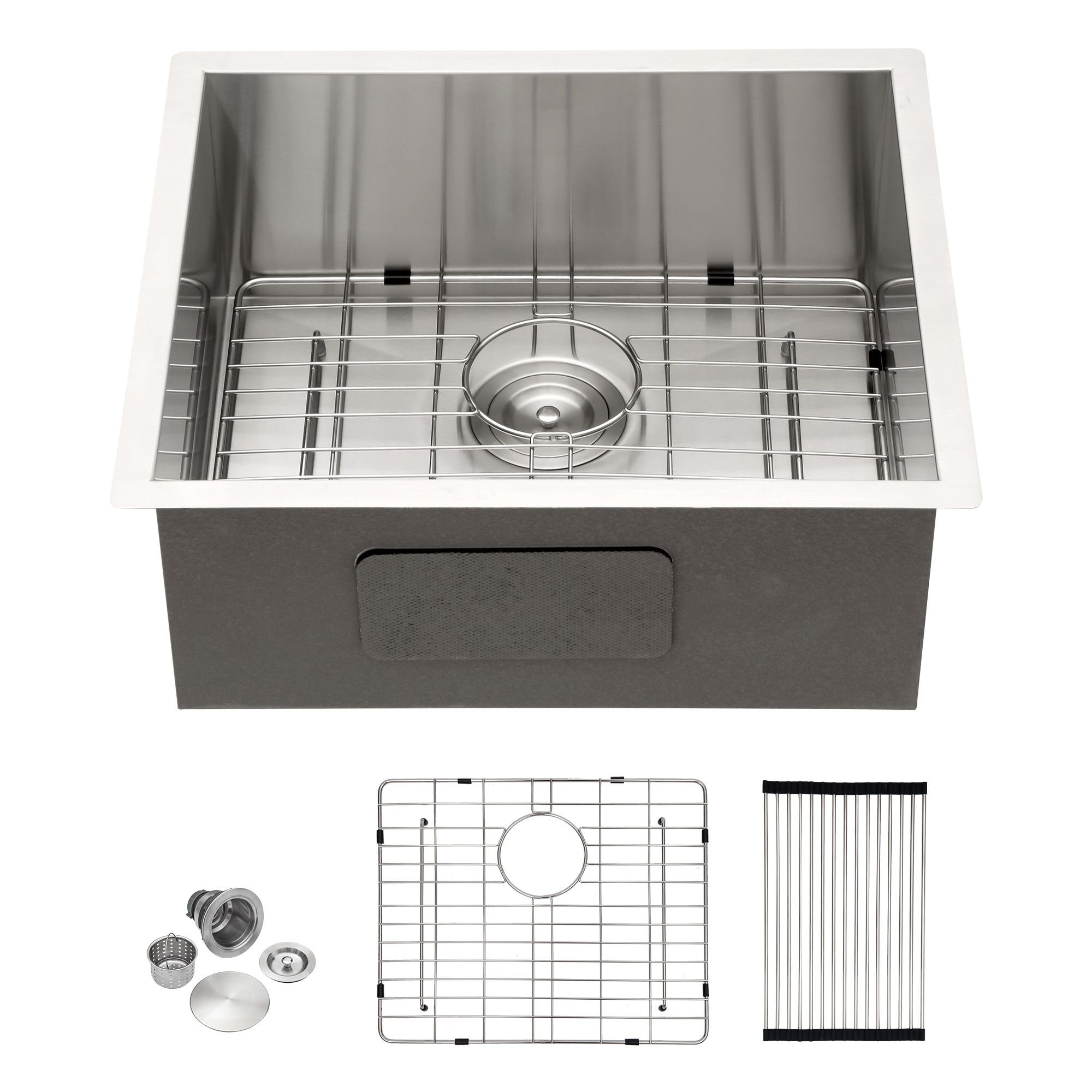Home > 25"x22" Undermount Handmade Stainless Steel Kitchen Sink,18 Gauge Small Single Bowl Bar Sink with Drain Kit
