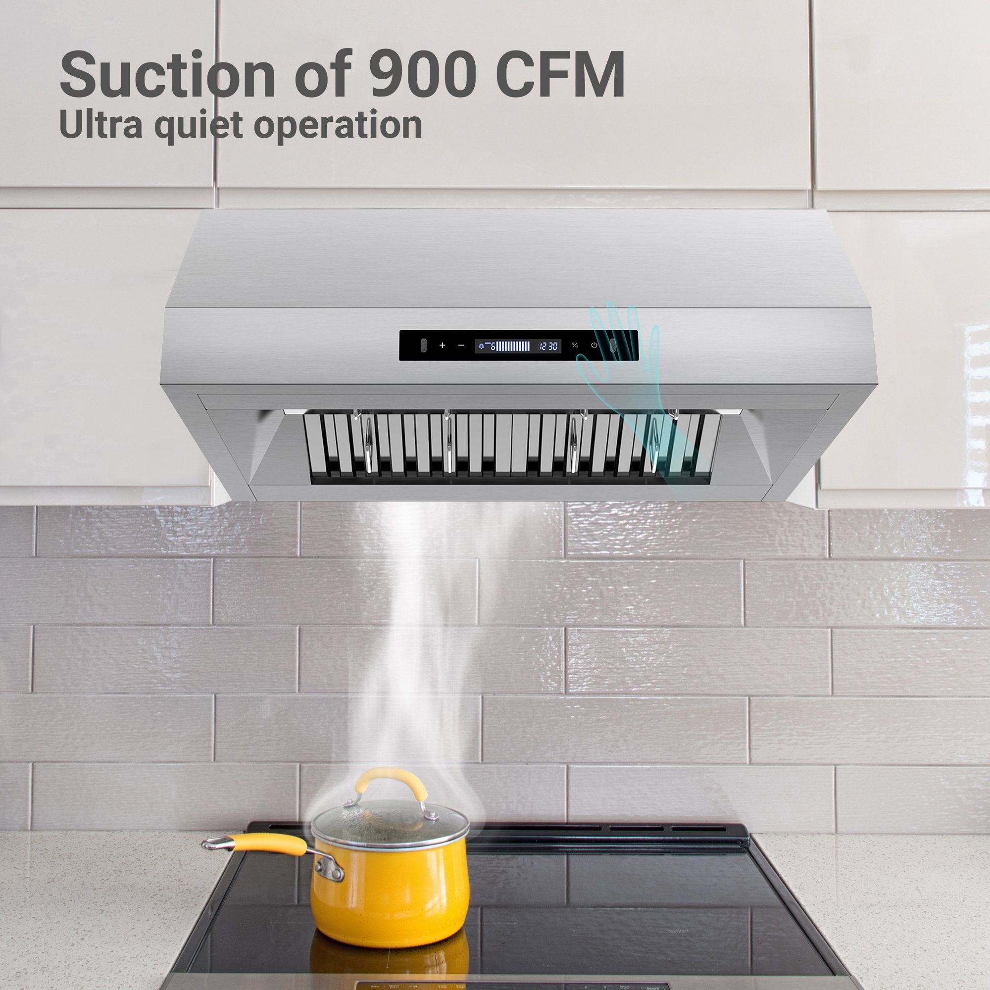 [900 CFM Powerful Suction]Tieasy range hood 30 inch with a durable and luxury cast aluminum housing motor, 900CFM removes smells and odors with ease for a clean kitchen. The vent hood airflow system can reach Max Energy Efficiency class of A++ and the lowest noise level can control at 40db, makeing your life become more quiet and simple.