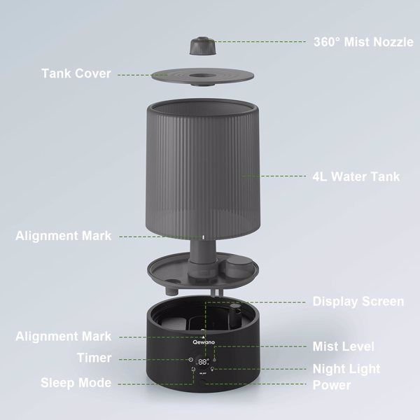 • [Easy Top-Fill Design] The humidifiers for bedroom home with a top-fill feature has a convenient design. It has a big opening that makes it easy to refill and clean without taking off the water tank. You can say goodbye to leaks that cause trouble.