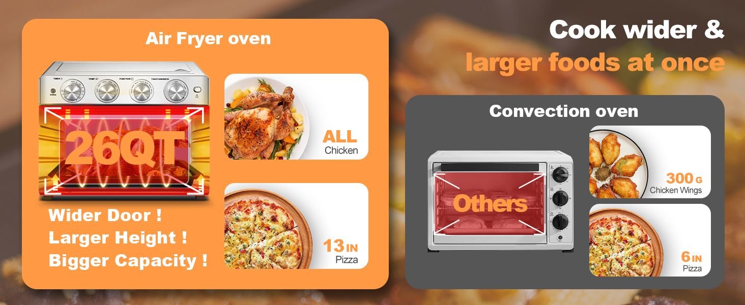 Home > 6 Slice 26QT/26L Air Fryer Fry Oil-Free, Extra Large Toaster Oven Combo, Air Fryer Oven, Roast, Bake, Broil,Convection Countertop Oven