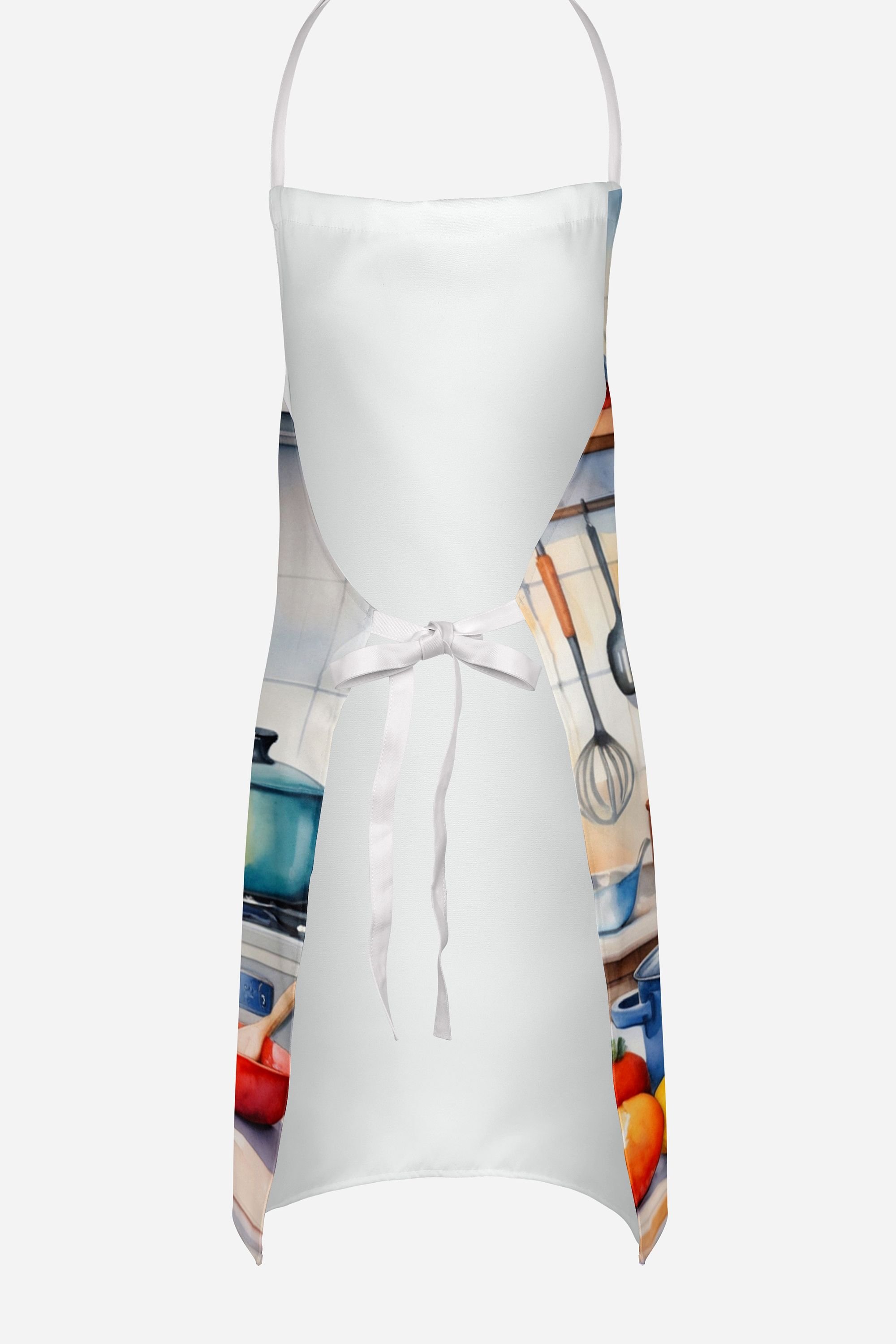 Apron featuring breed specific Poodle artwork. Elevate your cooking, baking, and grilling experiences with our versatile Kitchen or BBQ Apron. This Bib Style apron isn't just limited to culinary activities - it also serves as an excellent baking apron, artist apron, server apron, gardening apron, or even a dog grooming apron. The apron showcases vibrant full-color artwork contributed by one of our talented artists, bringing a dash of style to your daily tasks. With dimensions of approximately 27"W x 30"H, it provides ample coverage to protect your clothing from spills and splashes. Our apron is meticulously crafted from 100% Ultra Spun Polyester, known for its durability and lightweight nature. The apron comes with white tie straps, ensuring a comfortable and adjustable fit for all. It's a perfect choice for kitchen apron enthusiasts, whether you are a woman or a man. Designed for easy maintenance, this apron is fully machine washable. The quick-drying polyester material actively reduces staining, keeping your apron looking fresh and new for longer. Our beautifully designed apron isn't just a functional kitchen accessory - it's a fashion statement in the culinary world!