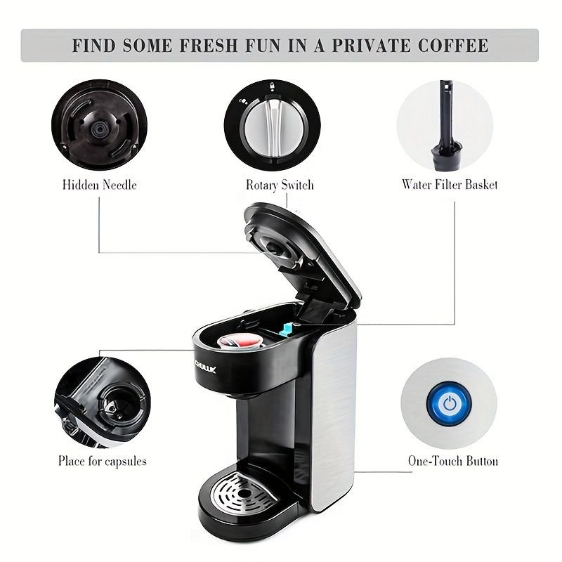 Home > CHULUX Stainless Steel Single Serve Coffee Maker for Capsule,Visiable Gradient Water Reservoir,One Button Operation and Auto Shut Off,1000 Watts