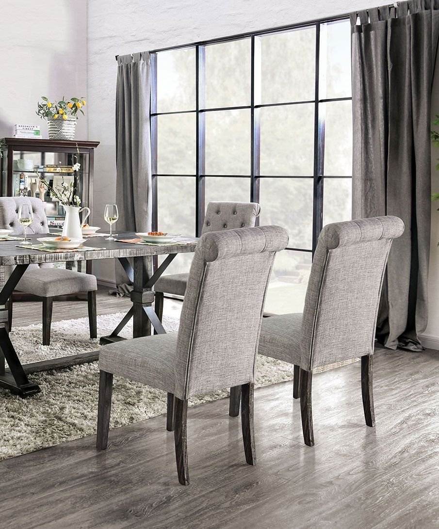 Home > Classic Antique Black / Light Gray Set of 2 Side Chairs Button Tufted Linen Like Fabric Solid wood Chair Upholstered Scroll Back Kitchen Rustic Dining