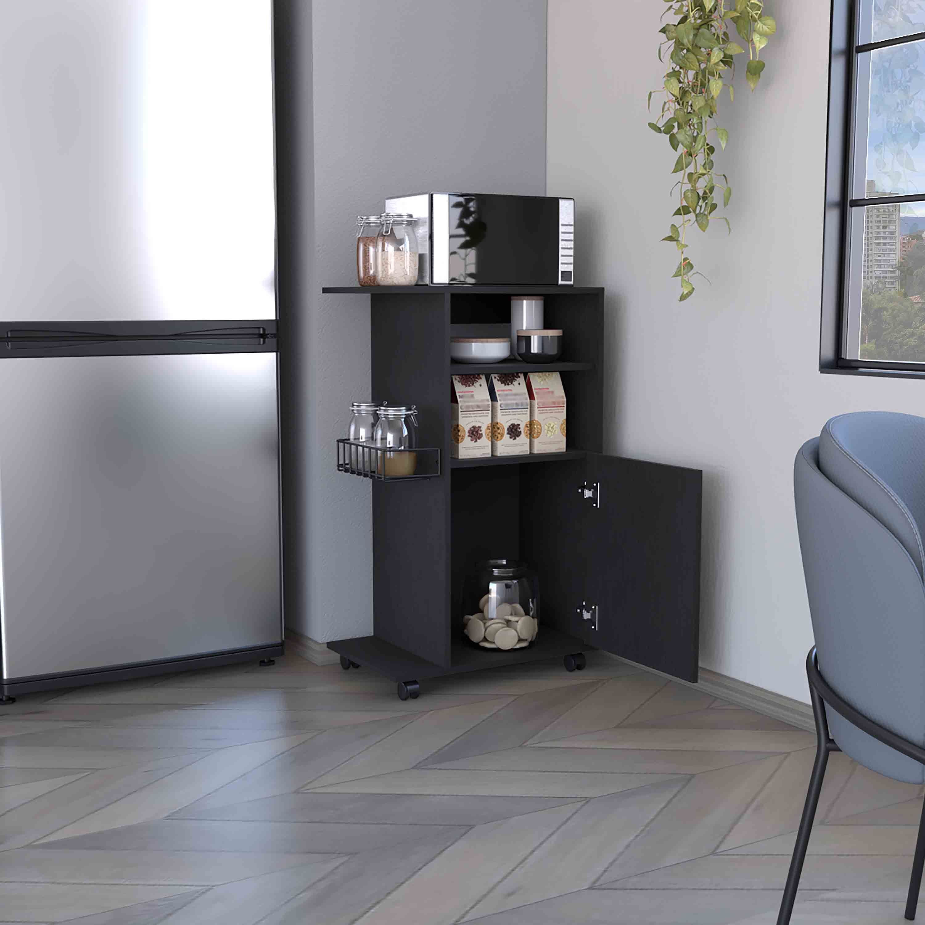 Clip Kitchen Cart, Single Door Cabinet, Four Casters -Black