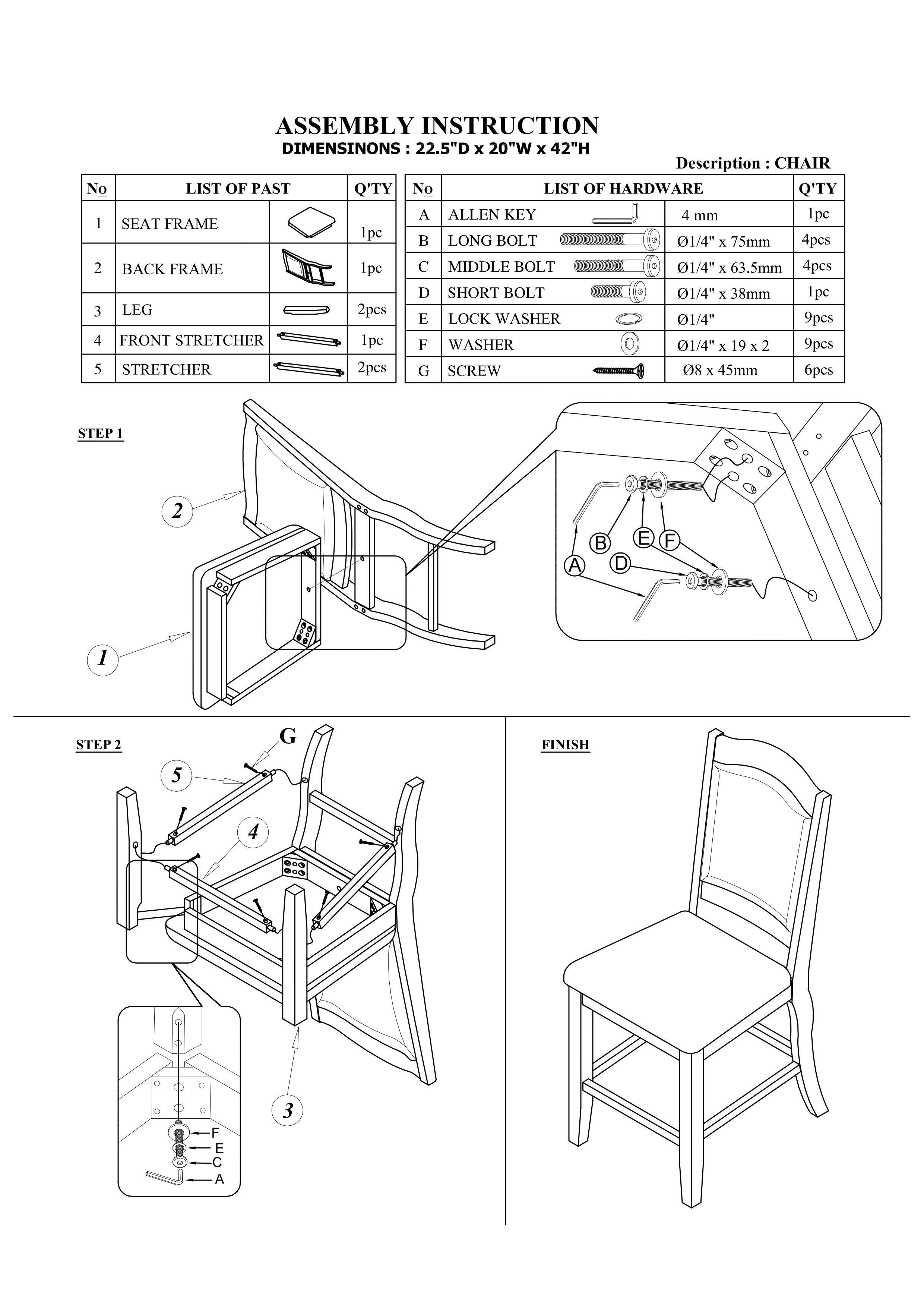 High Chairs / Counter Height chairs : 20"W X 23"D X 43"H ; Seat HT 24"H