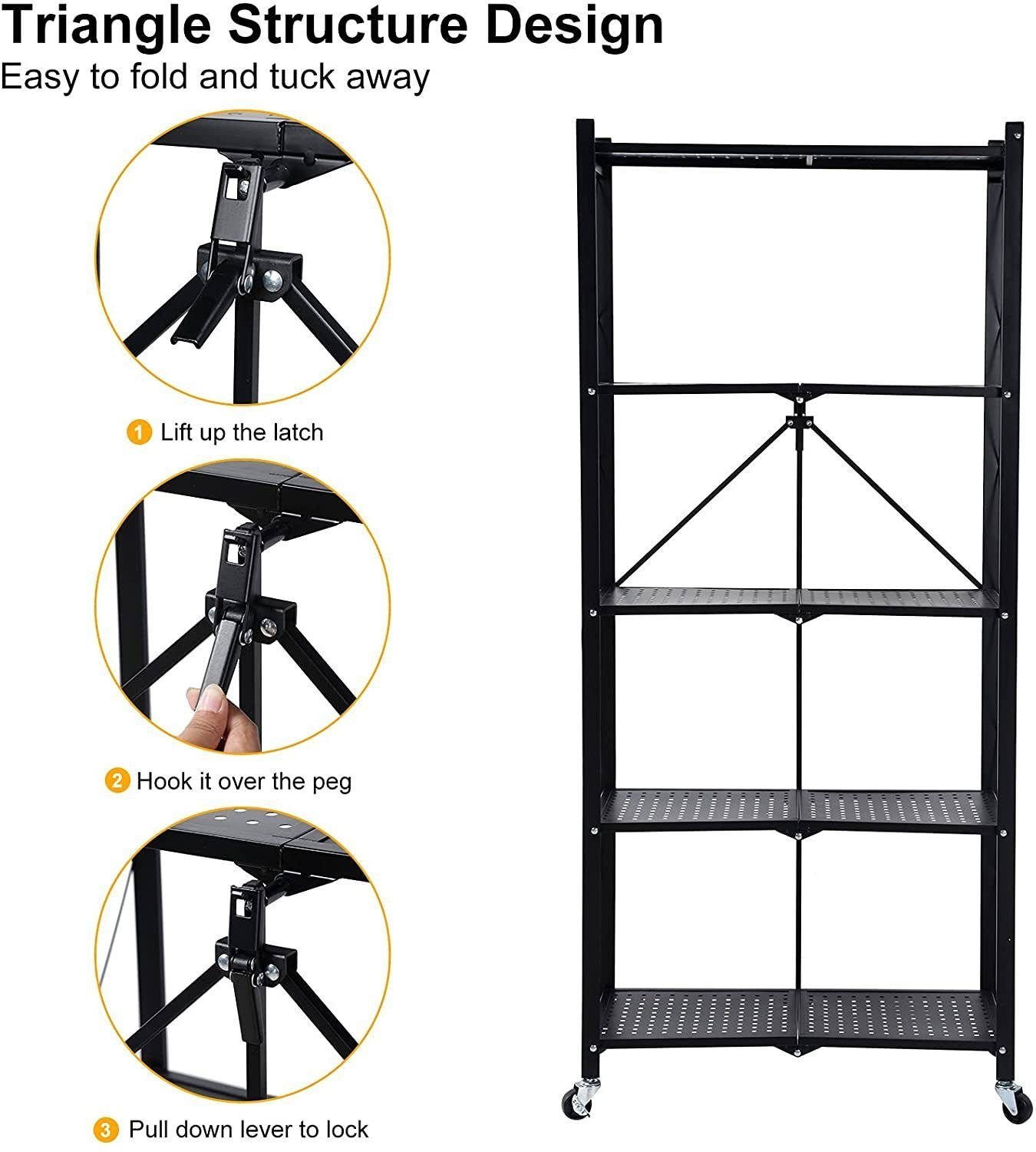 Foldable metal rack storage shelving for heavier storing and organization, It is great to use in living room, bedroom, kitchen , garage etc.