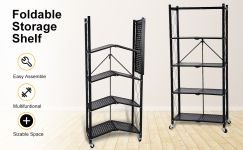 The foldable storage shelves features 4 professional grade caster wheels for easy mobility .