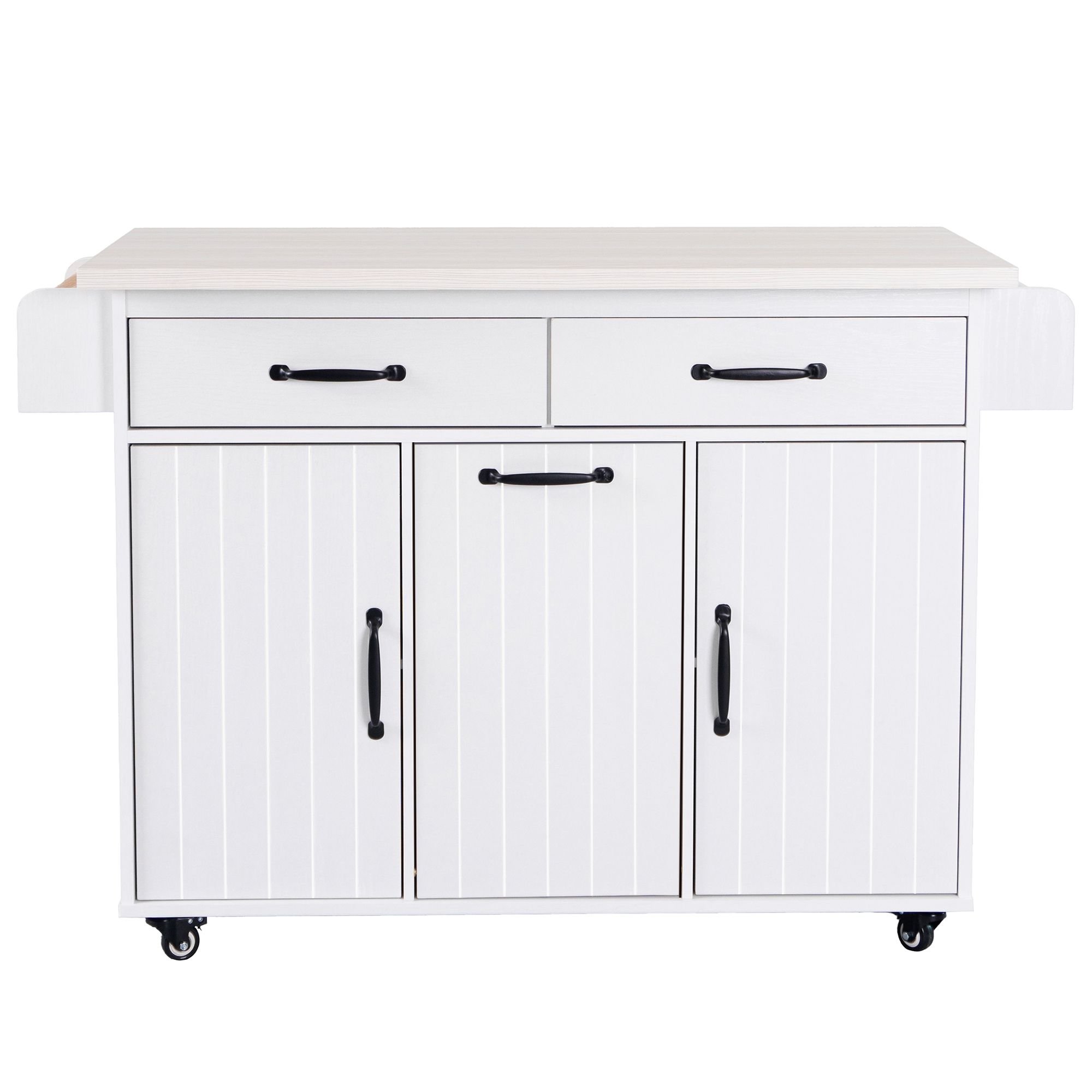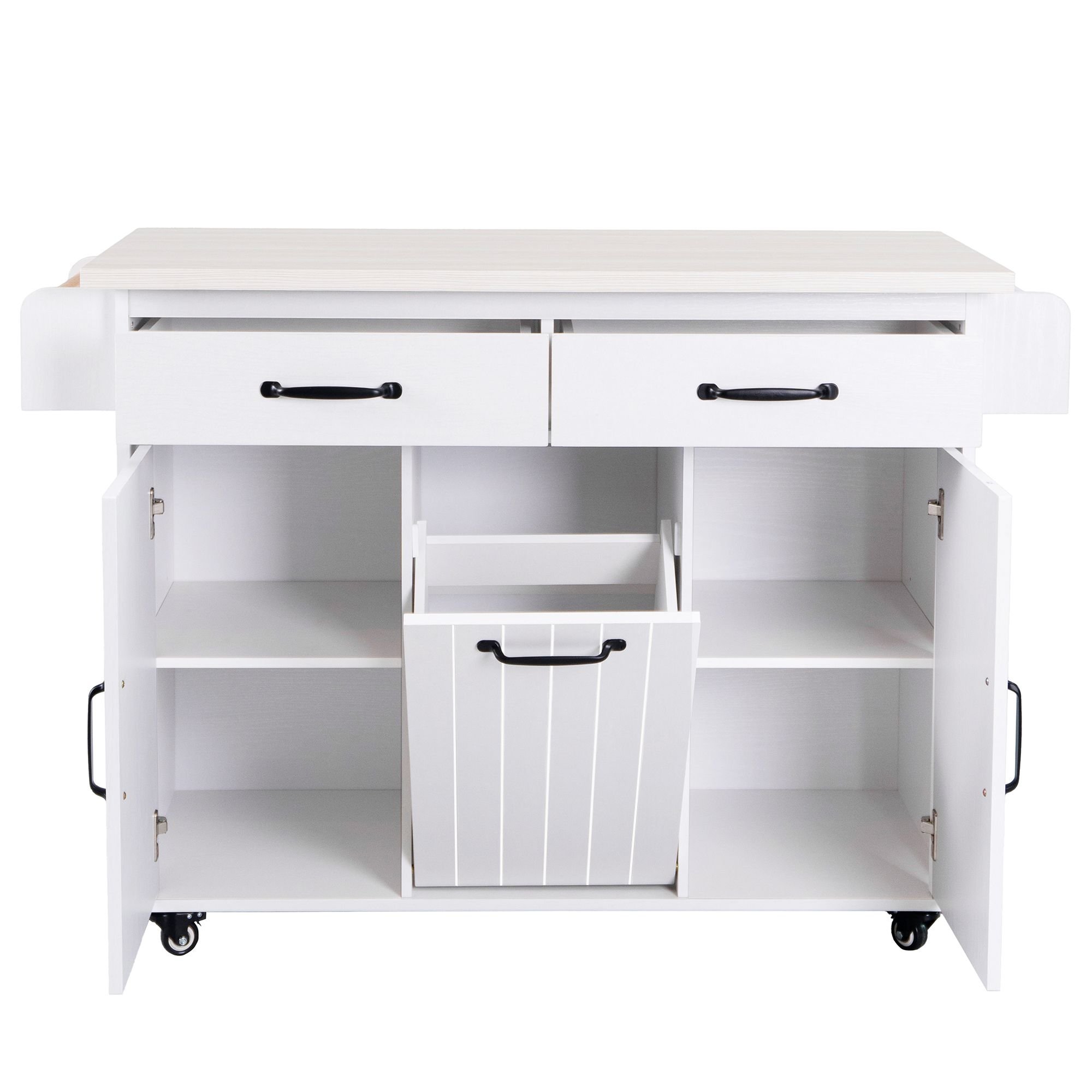 | Summary | This kitchen island brings significant savings to your cooking space and indoor storage. Constructed from P2 Grade Particleboard, stripes on the cabinet doors give it an attractive look. The multipurpose tilt-out trash can it carries is a great feature of the product, with two drawers, two cabinets, and a spice rack and towel rack, your kitchen essentials will no longer be cluttered. The rolling kitchen cart sits on lockable casters for easy mobility and stability. The thoughtfully designed drop leaf can be opened and folded. In addition, there are adjustable shelves for your flexible storage needs. |