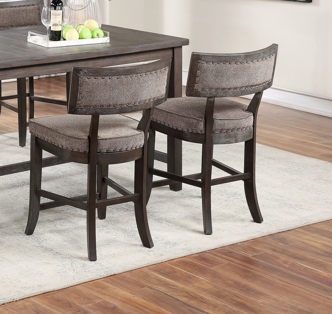 Description - Made with solid wood, this timeless and elegant counter height chairs dining set . The comfortable extra cushioned dining chairs have a nail head trimming finishing, it is designed with luxury in mind.