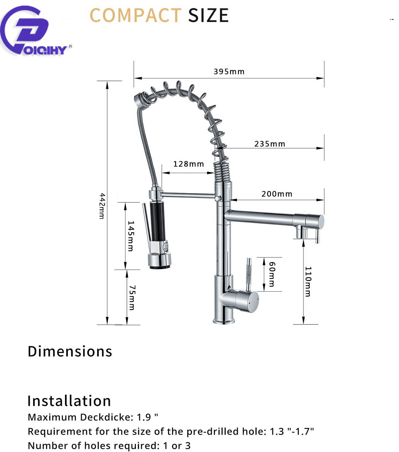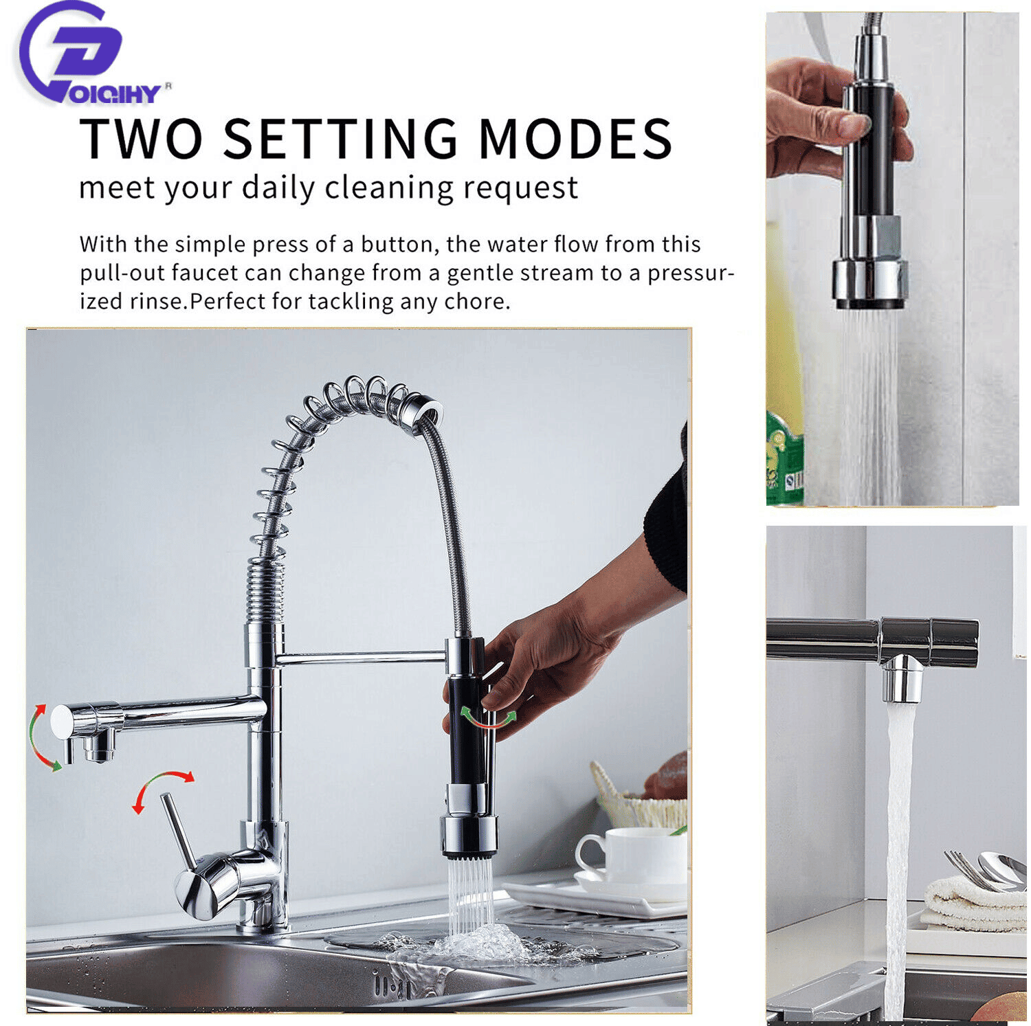 Stream Mode--- Perfect for filling pots and pans.Spray Mode--- Sprayer with High Pressure Is Able to Peel the Leftover Off On Your Dishes with Easy; So that It Makes Kitchen Work Easier.360° Degree Rotation