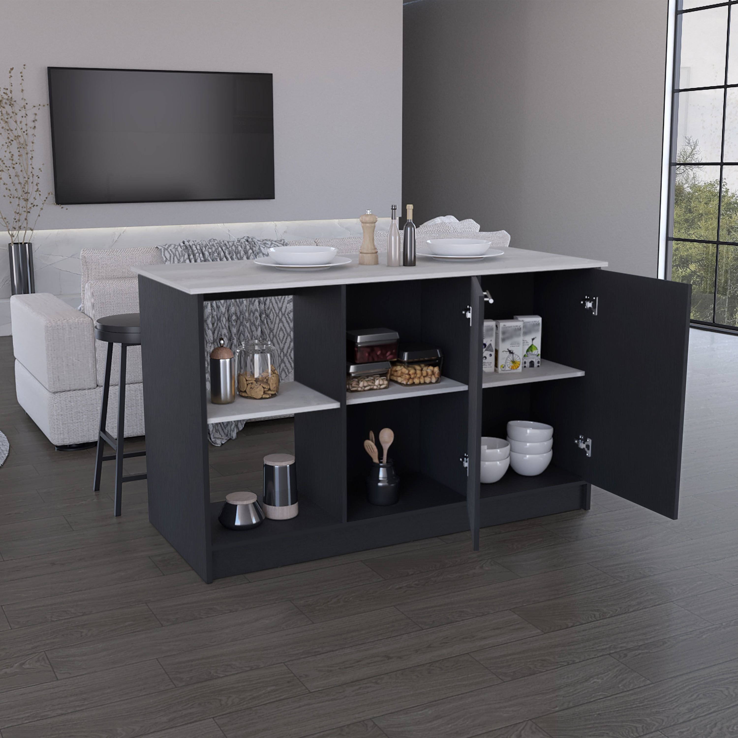 The kitchen island is 25.19 inches deep and 59 inches wide, providing you with plenty of workspace.