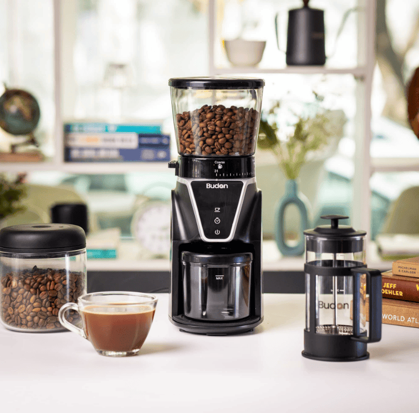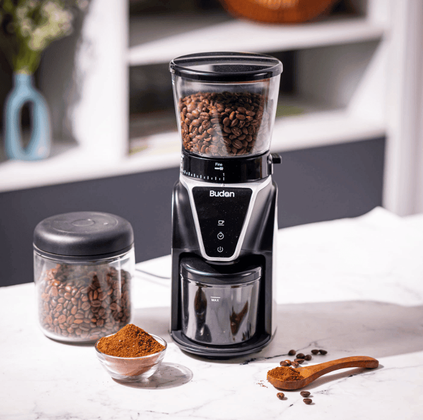 The 31 grinding settings provide levels from highly coarse to espresso to Turkish fine