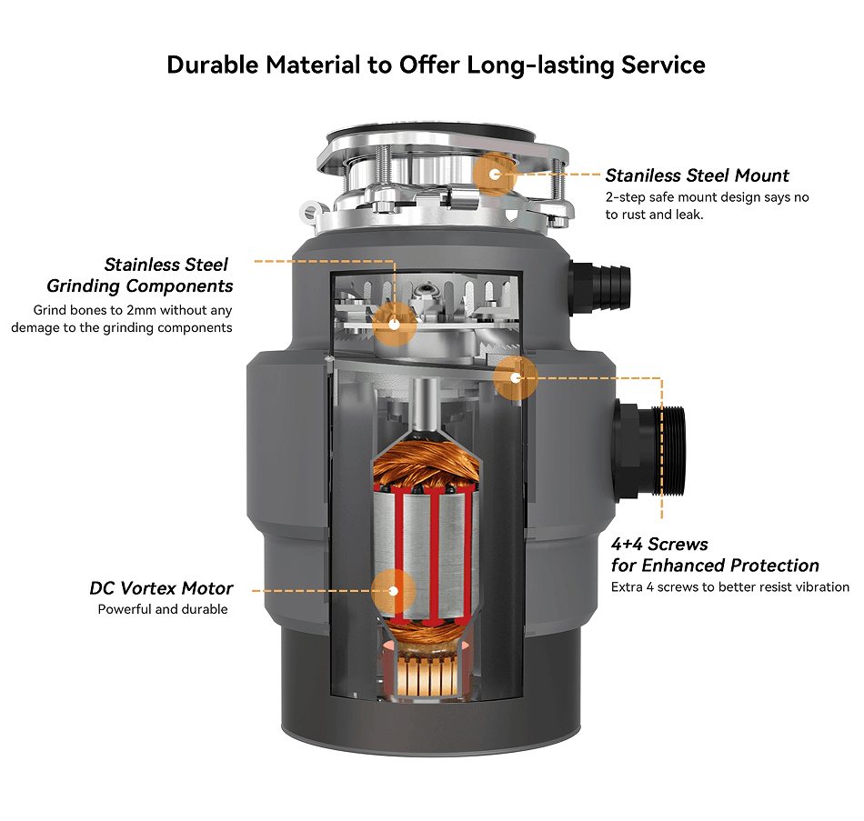 Popular household style, classic in waste treatment, with enhanced configuration and grinding technology, stable performance, safe and durable, meeting the basic needs of ordinary families.