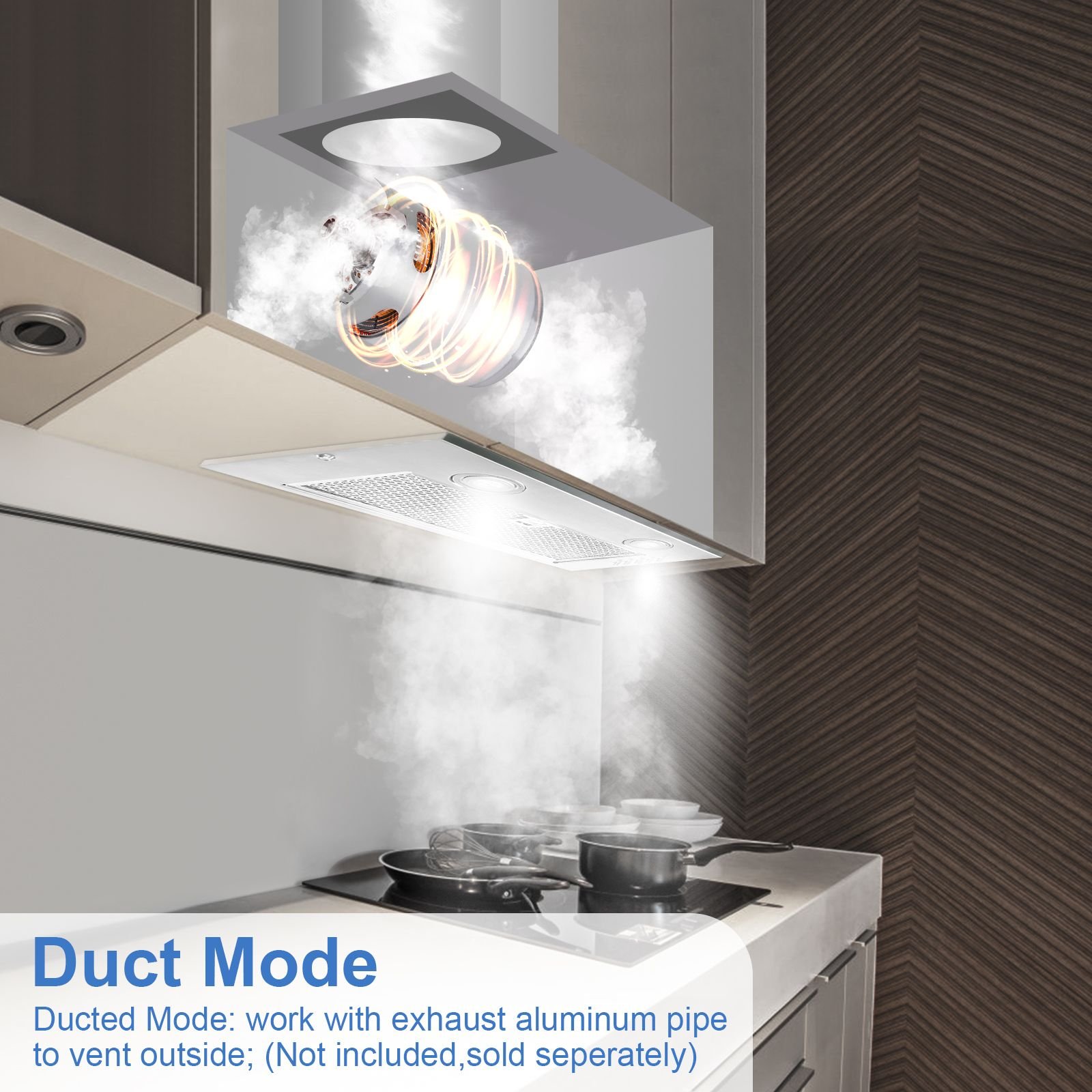 Ducted Range Hood: Worked with the 7 inch round aluminum exhaust pipe for ducted mode(sold separately Part EPBD052-1), which can help you vent out the smoke and cooking odors of the kitchen