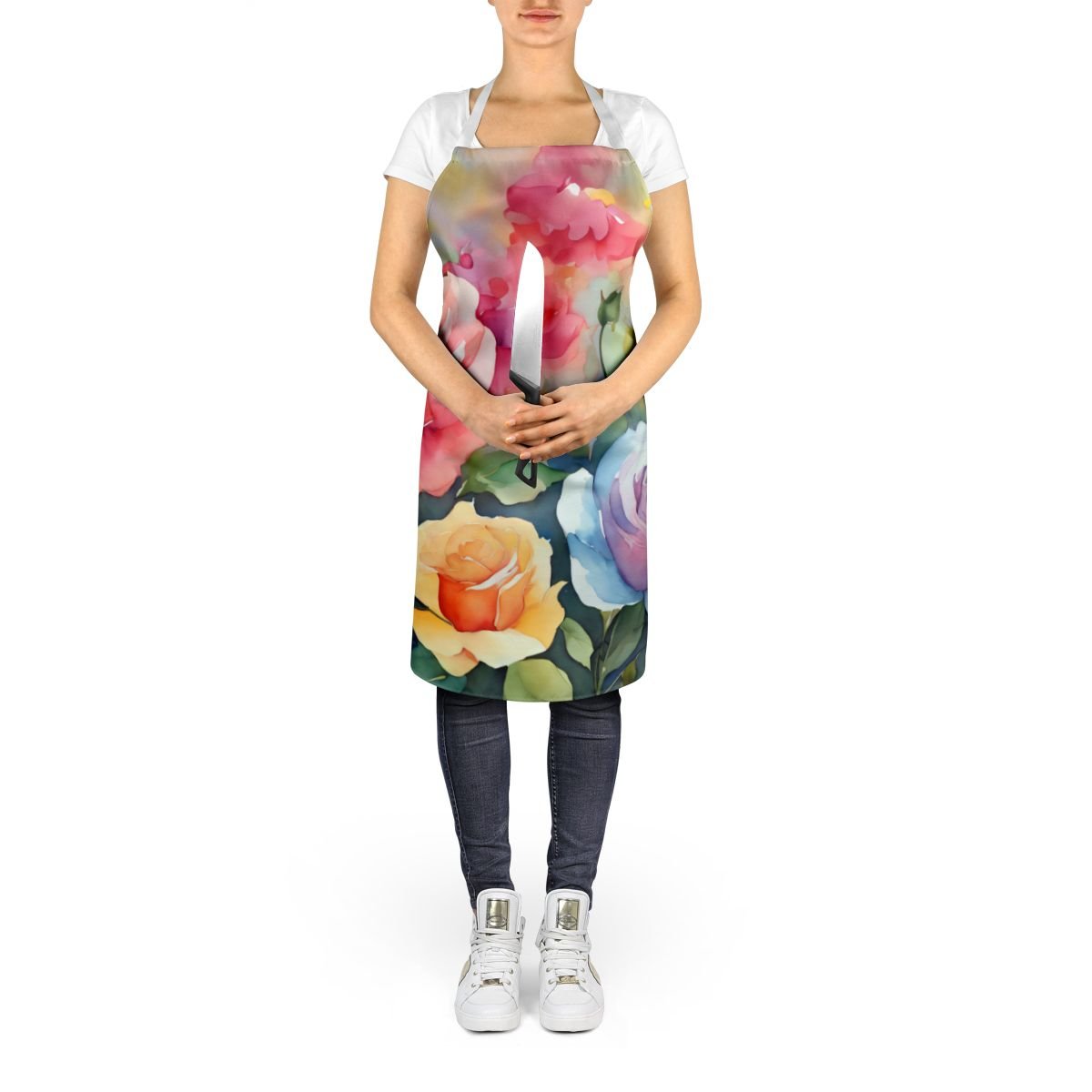 Roses in Watercolor Apron Cooking Kitchen Server Baking Crafts Gardening for Adult Women Men, Unisex, Large, Multicolor