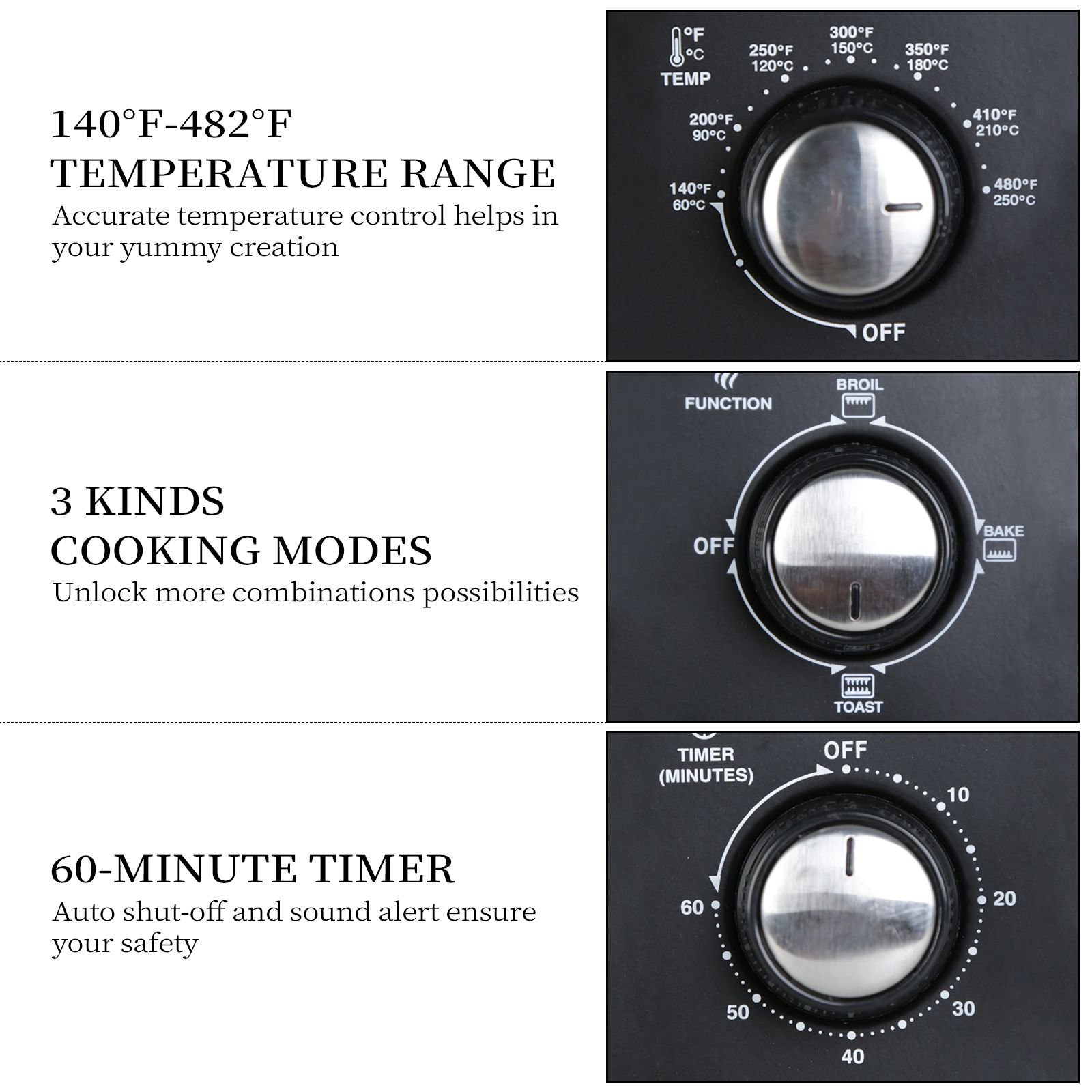 3 Functions in 1 :This toaster oven is perfect for bake, broil, ,a toast, and all viewable through an adorable functional window/door.It is also great for reheating, small pizzas, cauliflower wings etc