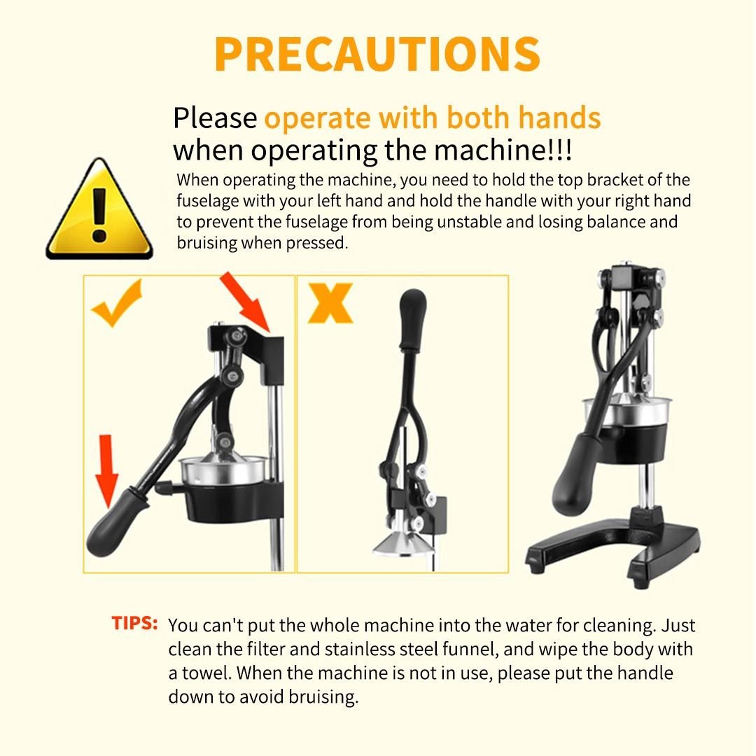 The main body is made of a sturdy cast iron construction base with a food-grade 304 stainless steel strainer and a large opening for juice collecting.