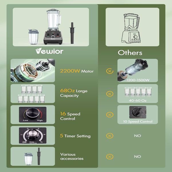 Home > VEWIOR 2200W Blenders for Kitchen, Professional Blender with 68oz Tritan Container & 27oz To-Go Cup, Countertop Blender for Shakes and Smoothies