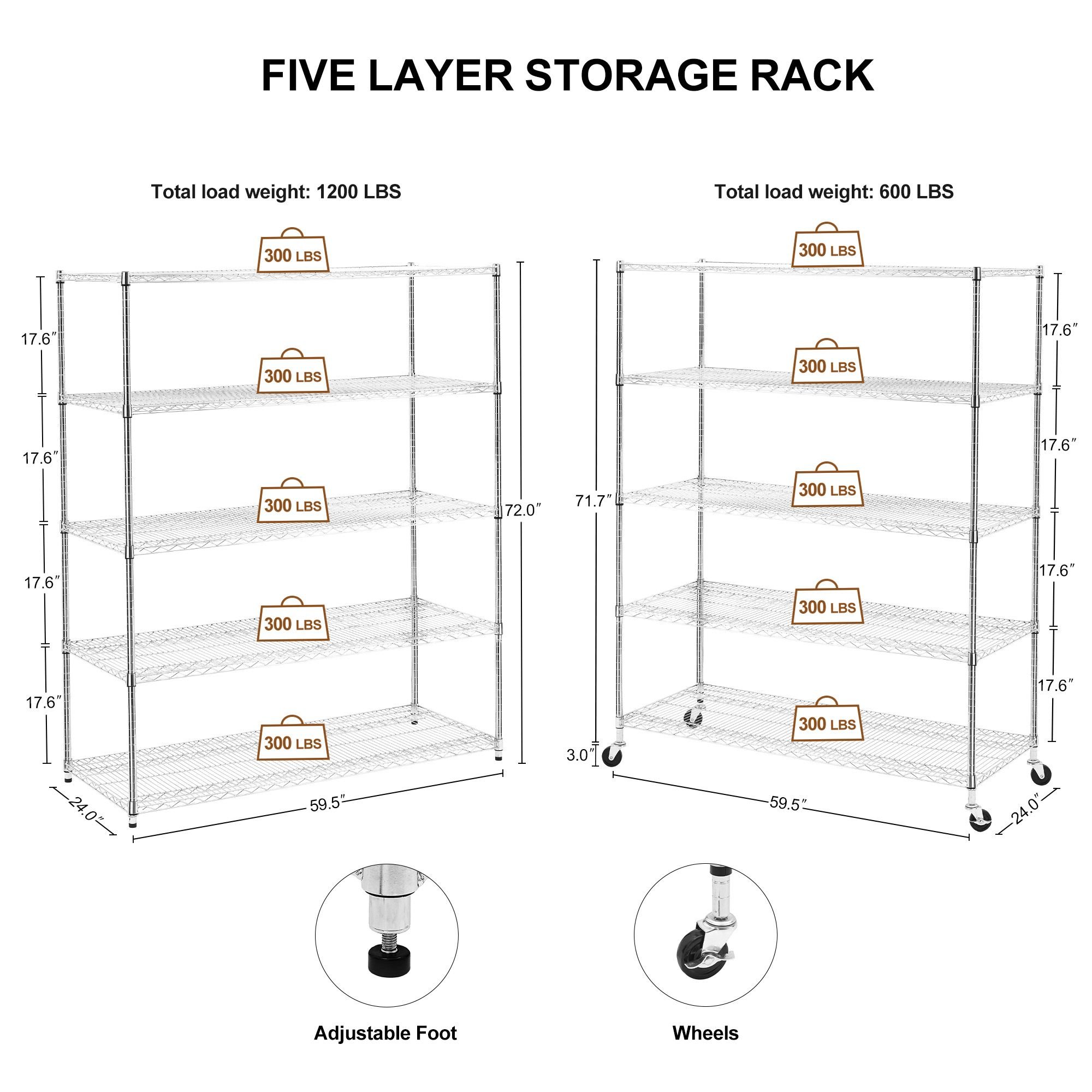 This industrial mesh metal shelf is made of high-carbon steel with high load-bearing capacity and chrome-plated surface, which is not only smooth, but also waterproof, rust or corrosion-resistant, sturdy and durable.
